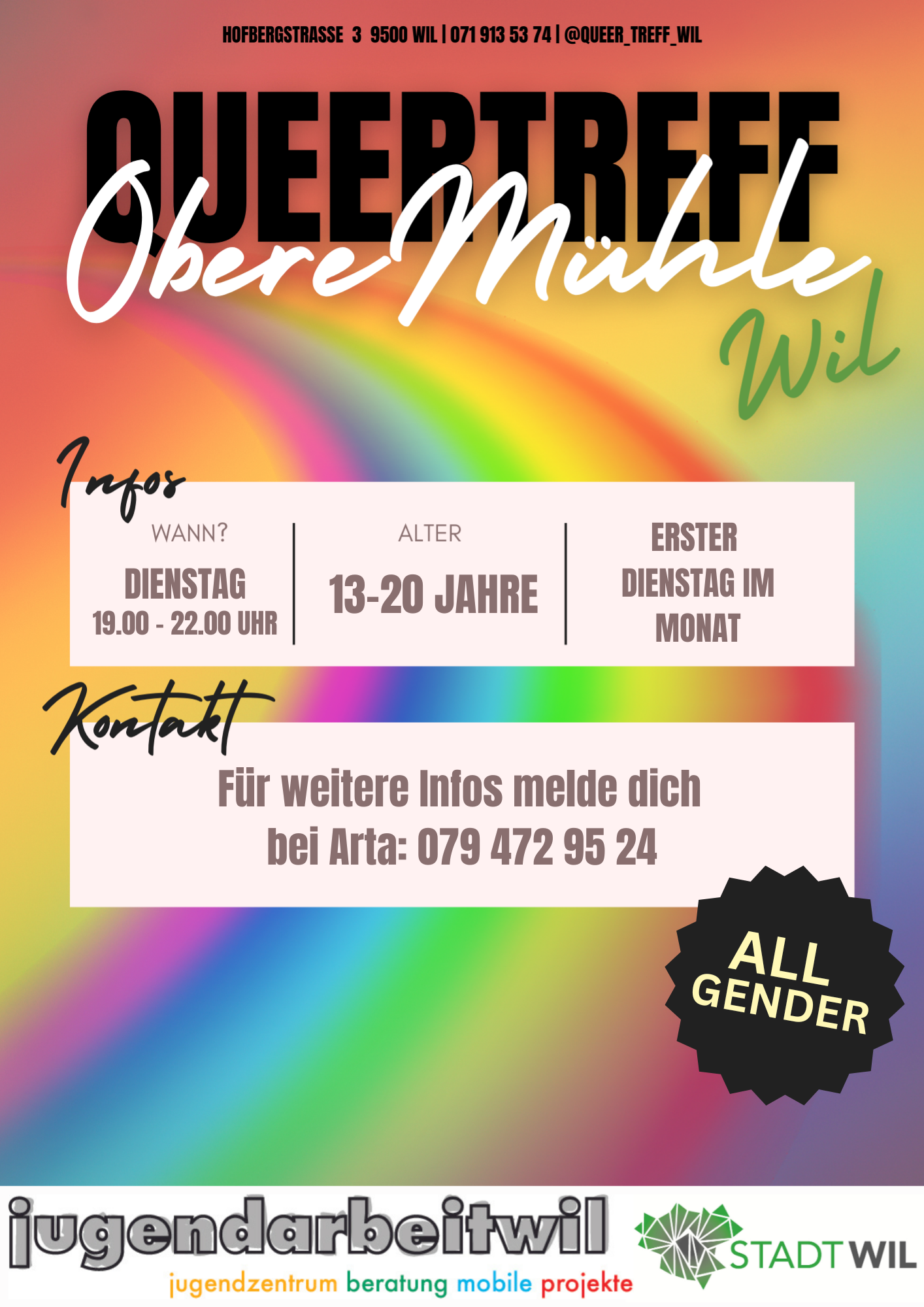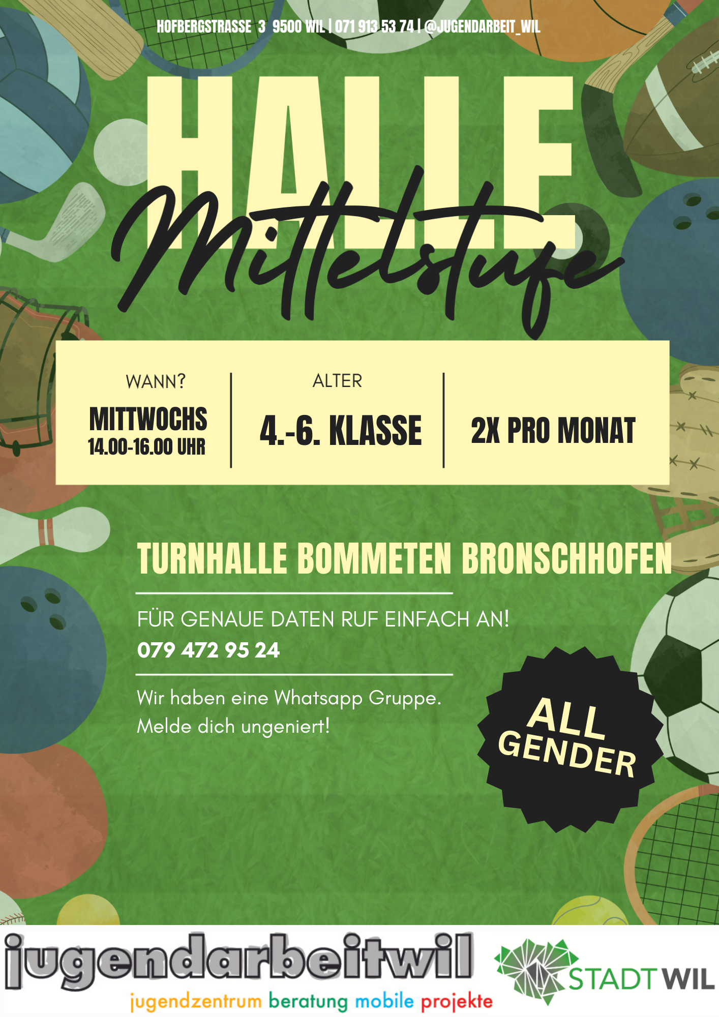 Du kannst dich aber auch auf Instagram oder unter 079 472 95 24 bei uns melden