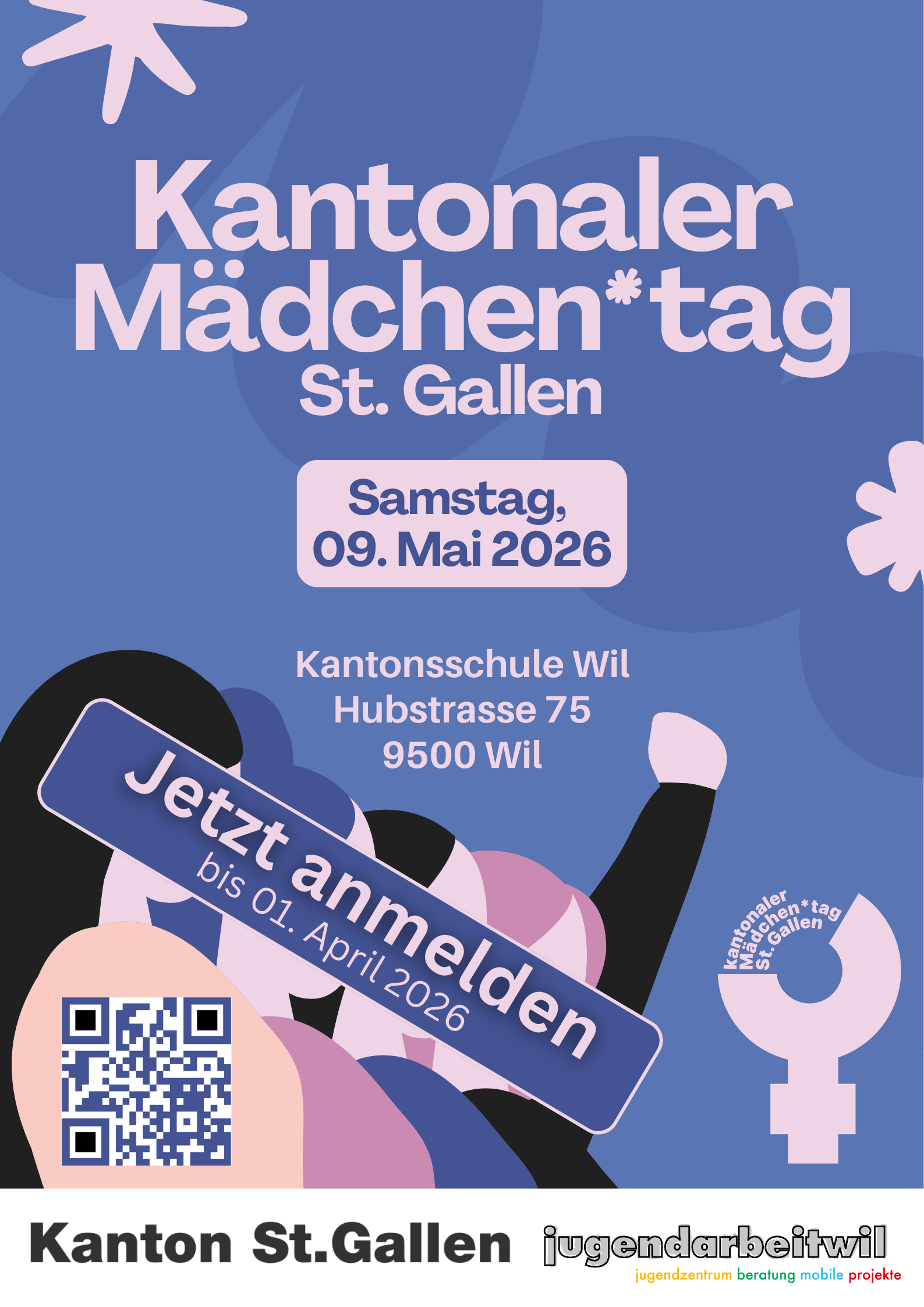 Der kantonale Mädchentag 2026 wird ein kraftvoller, empowernder Tag, an dem Mädchen, aus verschiedensten Regionen des Kanton St. Gallen, zusammenkamen, um ihre Stimmen zu stärken, sich auszutauschen und gemeinsam für ihre Rechte einzustehen. Durch Workshops, und kreative Aktivitäten bietet der Tag Raum, um Selbstbewusstsein aufzubauen, Strukturen zu hinterfragen und Solidarität unter Mädchen zu fördern. Ab JETZT ist auch die Anmeldung aufgeschaltet.